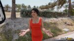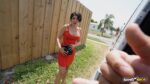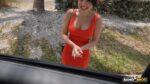 Daya Dare stands outdoors smiling in a tight red dress that barely contains her massive tits before climbing into the Bang Bus. Once inside …